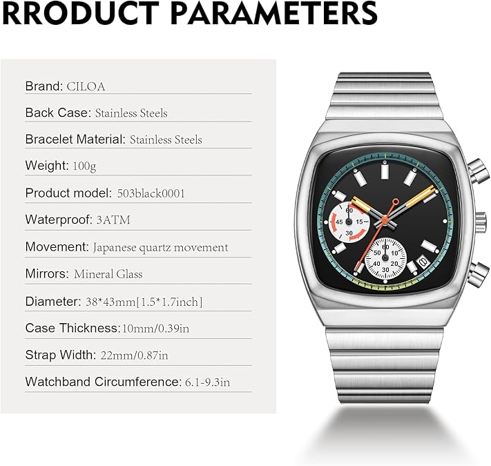 ACCURATE TIME KEEPING: CILOA watches for men to provide stable and accurate travel time for the watch, it will always tell you accurate time in any occasions or important moments. Classic mens watches, fashion hands/markers, calendar window and two chronograph subdials, provide more functions and allow you to easily grasp the rhythm of time